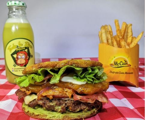 Carne artesanal de la casa 200 gr, rodaja de piña